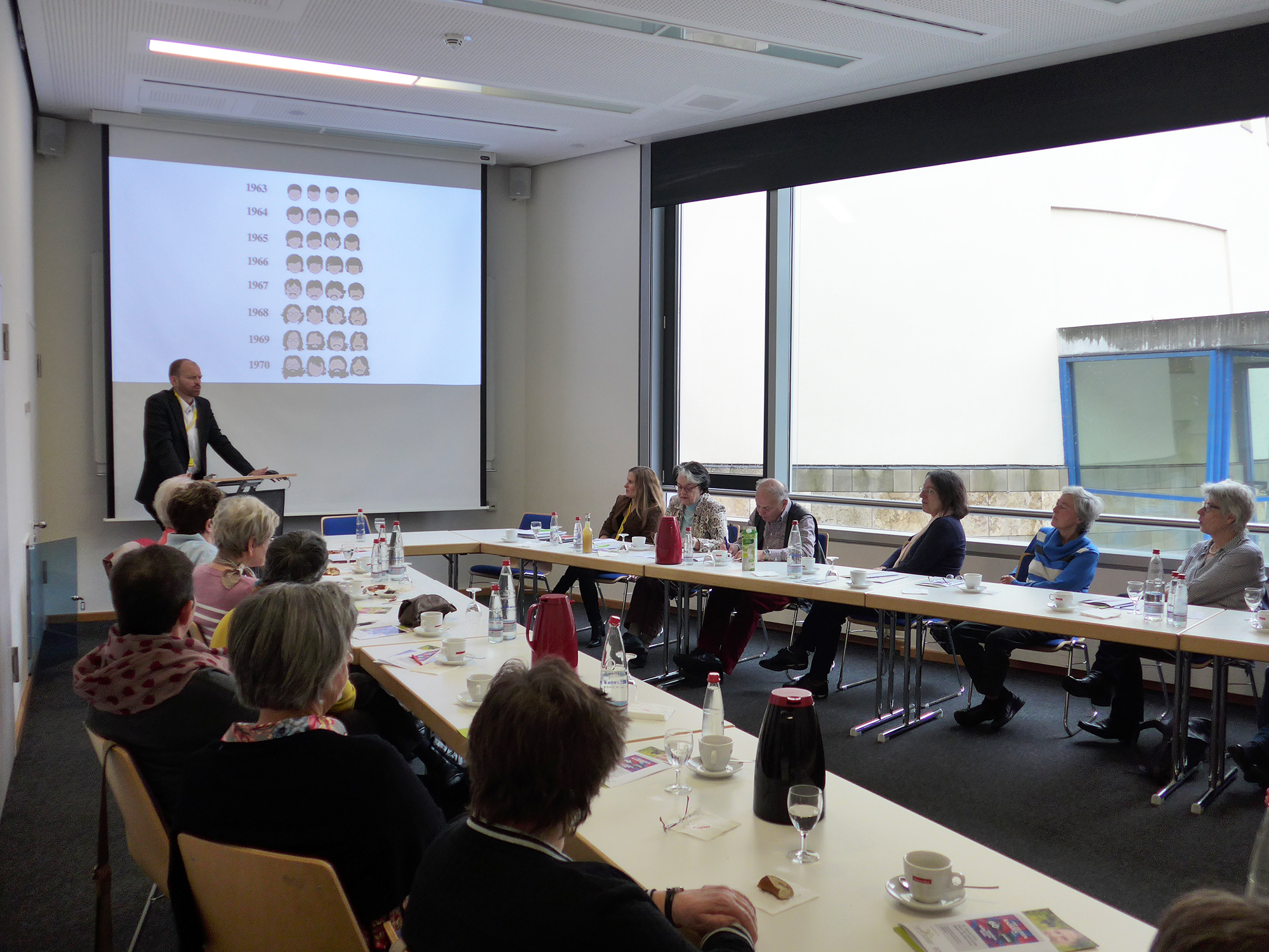 Die Museumsseminare starteten mit einem interessanten Vortrag der KuratorInnen Dr. Sebastian Dörfler und Dr. Katja Nagel über die langen 1960er Jahre (1958 bis 1973) und den Veränderungsprozess, der in dieser Zeit stattgefunden hat. Wilde Frisuren, rockige Musik, Geschlechterverhältnisse und mehr politisches Handeln der Jugendlichen waren die Themen die während des Vortrags aufgegriffen wurden und auch in der Ausstellung wiederzufinden waren.